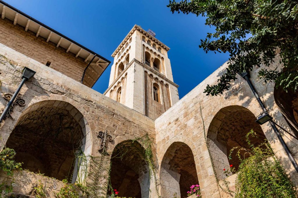 The Archaeological Park under the Church of the Redeemer guides the visitor “through the ages”: you can go back more than 2000 years under the nave and explore archaeological remains right up to the time of Herod the Great. You encounter a quarry used until the turn of the century, the garden area outside the New Testament Jerusalem, the rubble of 70 BC destroyed by Titus city, building remains of Adrian’s time and the medieval floor mosaic of the Church of St. Mary Latina. The archaeological park and the museum in the cloister were initiated by the German Evangelical Institute for Aged Aspects of the Holy Land, designed in conjunction with its Friends and opened in 2012. Worthwhile is also the ascent to our church tower (178 steps)! From there, there is a fantastic panoramic view over the entire old town. You are also welcome to visit our medieval cloister to the right of the church and have a look into the Johanniter chapel there.